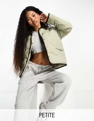 Vero Moda Petite – Steppjacke in Steinbeige mit Cordkragen und Verzierung
