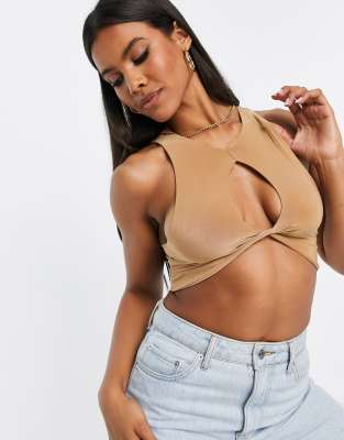 so basic keyhole crop top in camel | ASOS
